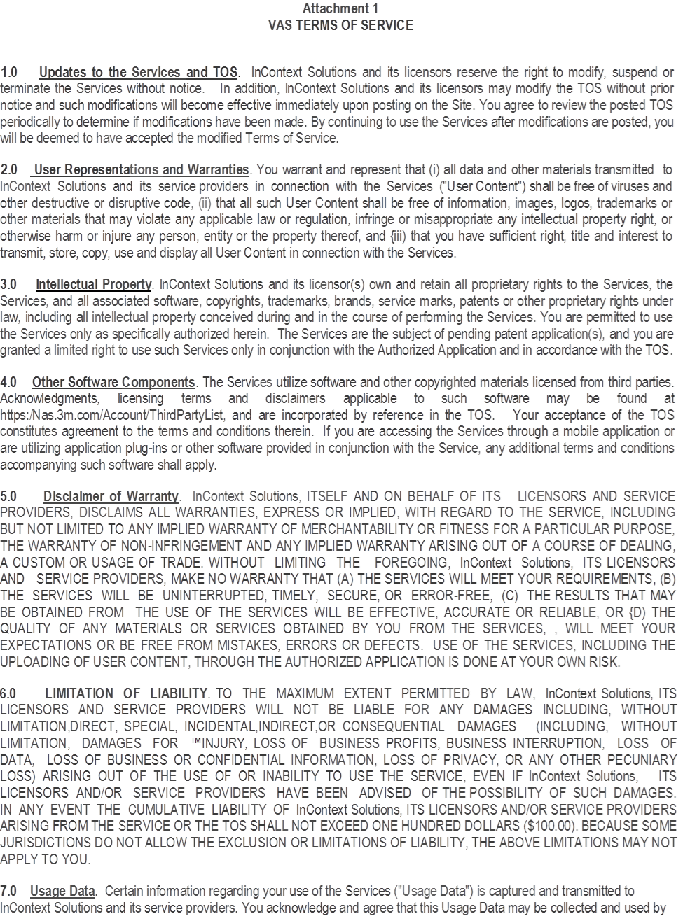 - 3M VAS Visual Attention Service – Terms of Service (see Attachment 1)